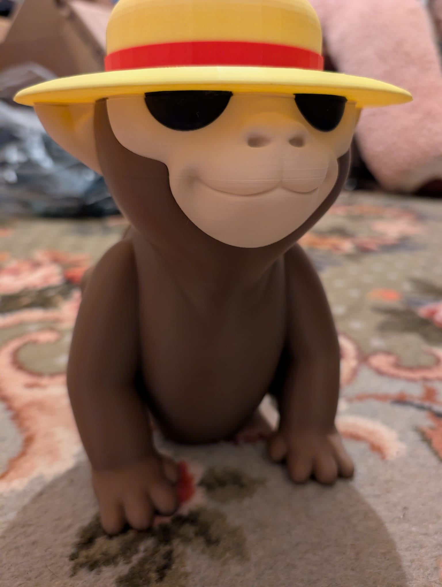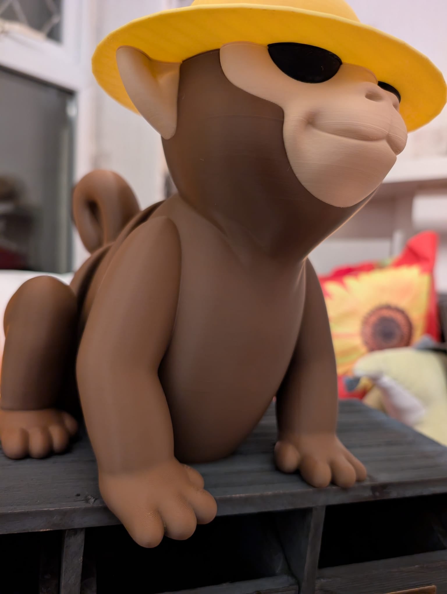 This laid-back monkey rocks a yellow straw hat and a chill, half-eyed grin! Perfect as a playful toy or a...